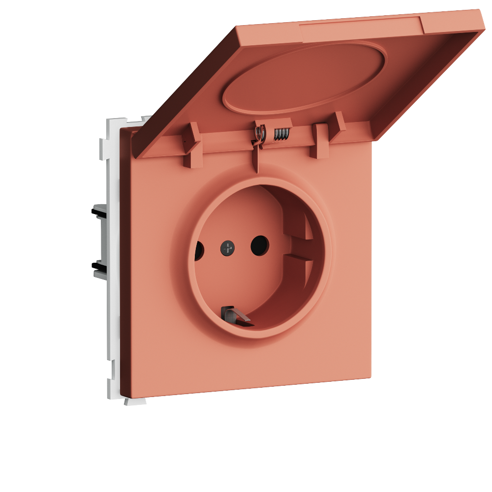 Розетка встраиваемая Donel R98 Schuko с крышкой и заземлением на клеммах Коралл матовый DA17700-DA52045