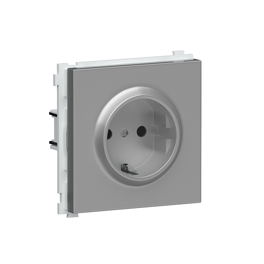 Розетка встраиваемая Donel R98 Schuko с заземлением и шторками на клеммах Алюминий матовый DA17700-DA22026