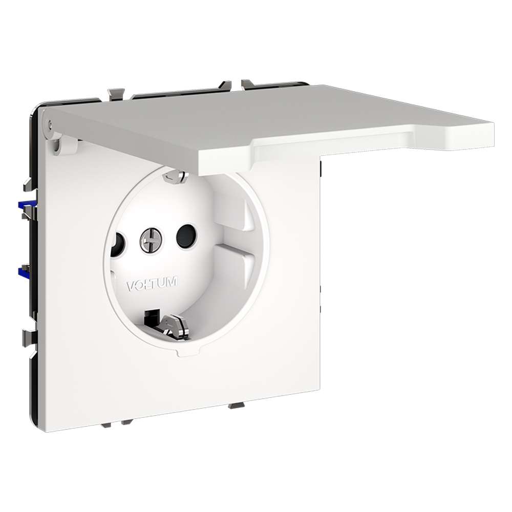 Розетка встраиваемая Voltum S70 с заземлением, защитными шторками и крышкой Белый матовый VLS040302